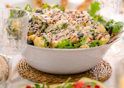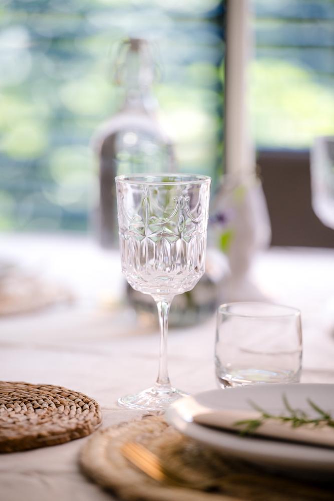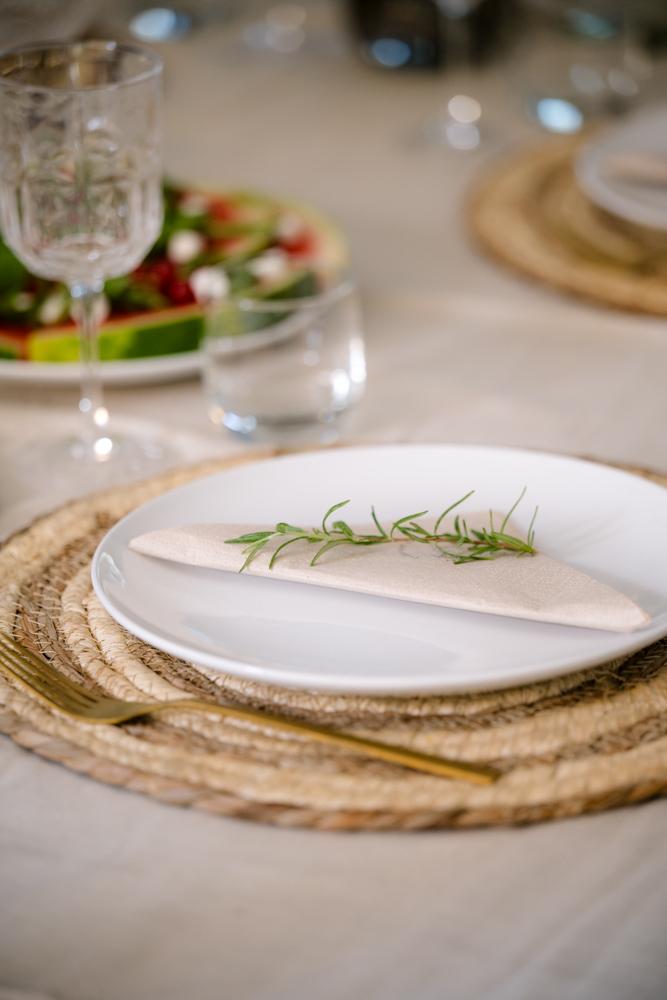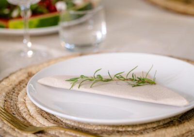 Voor een gedekte tafel neem je zelf je borden, tafelkleed, bestek, glazen etc mee.